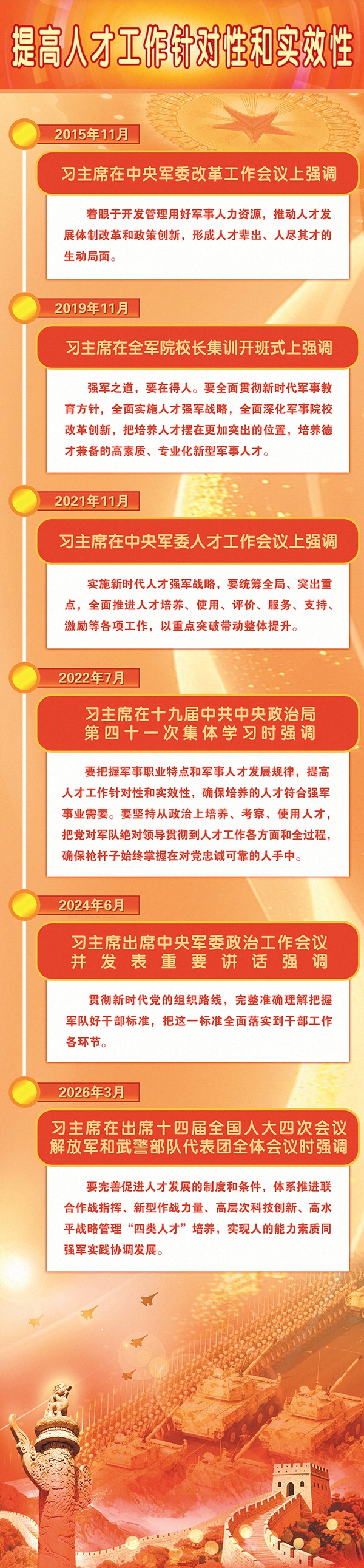 人才资源是第一资源。攻坚建军百年,建设世界一流军队,迫切需要建设革命化专业化人才队伍,推进军事人员现代化。