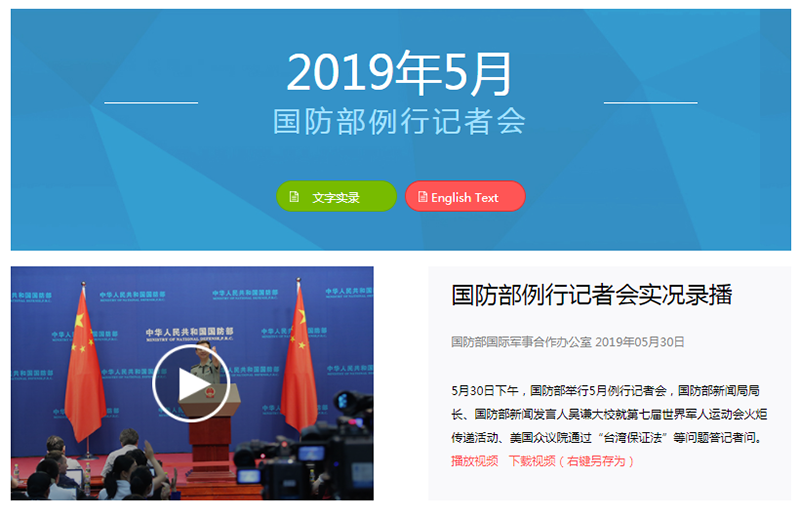 国防部网对外传递中国军方声音