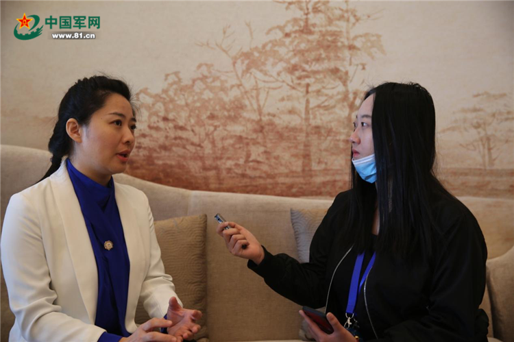 △童真(左)正在接受中国军网记者采访。王昕娟 摄