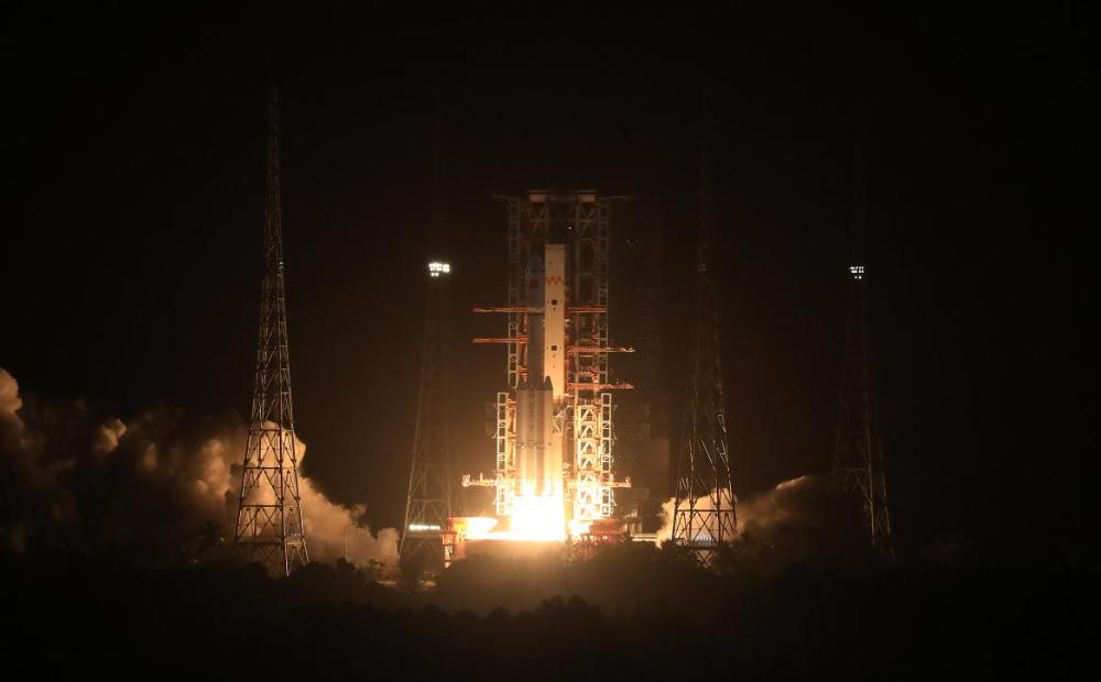 5月29日20时50分许,在中国文昌航天发射场,发射天舟二号货运飞船的长征七号遥三运载火箭已经点火起飞。