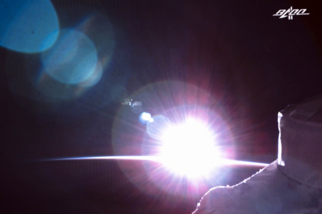 7月17日在北京航天飞行控制中心拍摄的天舟三号货运飞船撤离空间站组合体图像。这是天和核心舱外景相机实时图像。新华社记者 郭中正 摄