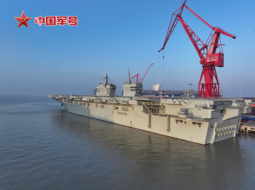 中国军号上海11月14日电 (记者钱晓虎、张懋瑄)今天上午9时许,我国076两栖攻击舰首舰四川舰从上海沪东中华造船厂码头解缆启航,赴相关海域开展首次航行试验任务。这次海试将主要检测验证四川舰动力、电力等系统的可靠性和稳定性。据了解,自2024年12月下水以来,四川舰建造工作按计划稳步推进,顺利完成系泊试验和装设备调试,具备出海试验的技术条件。