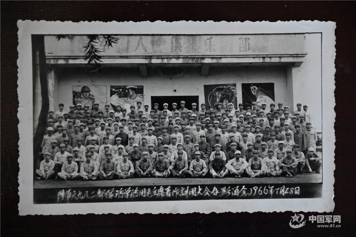 1966年7月28日,陆军6982部队活学活用毛主席著作讲用大会合影留念。五排右八为吴子午。(受访者家属提供)