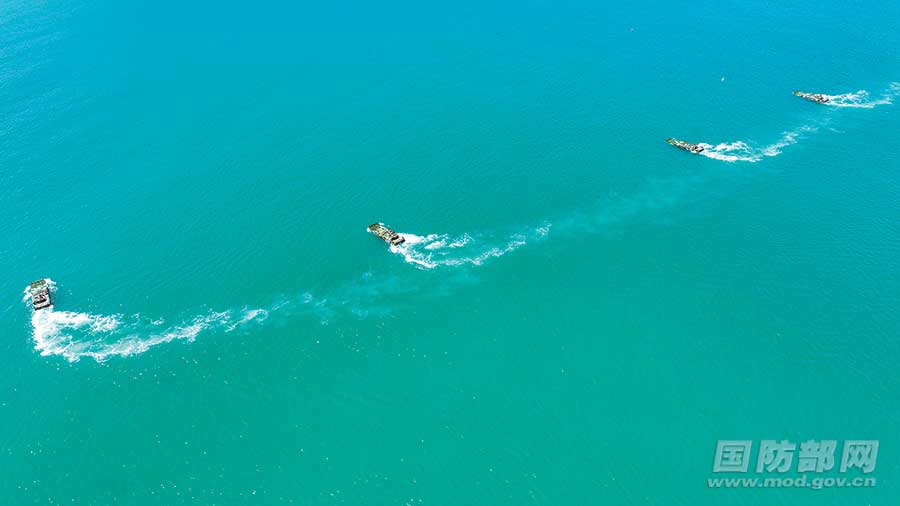 盛夏,东部战区陆军某旅组织官兵开展海上射击训练。图为两栖突击车海上行进。谢文剑摄