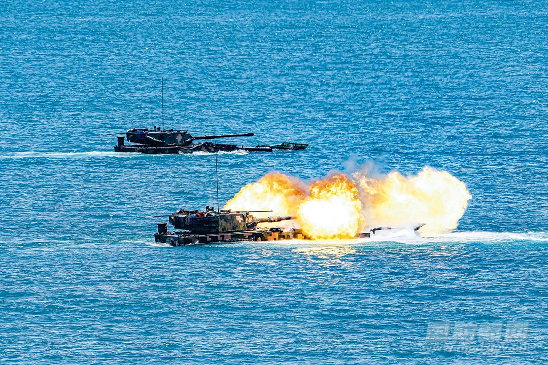 “发现‘敌’装甲目标!”某车车长通过车载电台向指挥所上报“敌情”,同时要求炮手做好射击准备。指挥员研判战场态势后,果断下达作战指令。炮手迅速瞄准锁定目标,一枚枚炮弹破膛而出。霎时,海上火光冲天,硝烟弥漫。