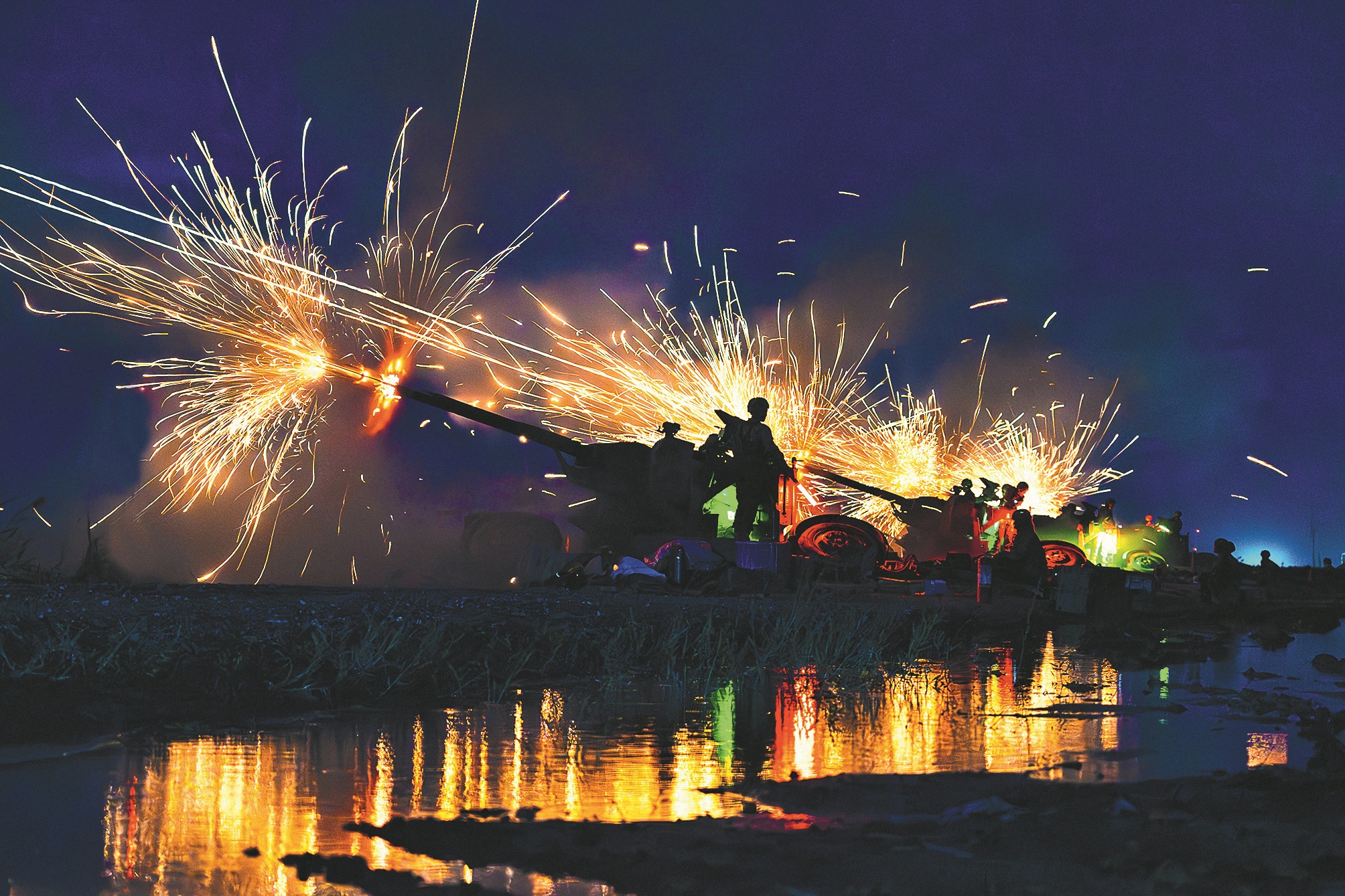 夜幕下,高炮分队打击“敌”目标。