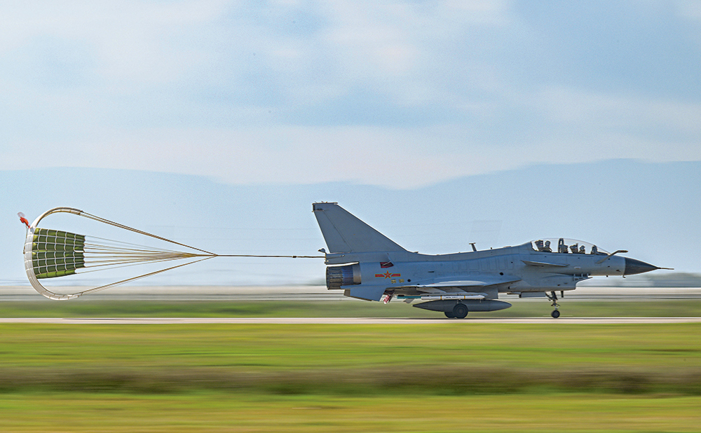 秋日,空军航空兵某旅组织飞行训练。图为战机着陆滑行。靳航宇摄