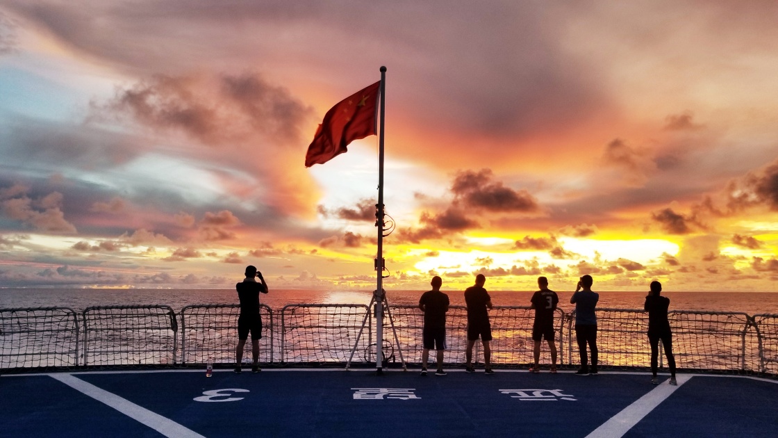 远望3号船船员在后甲板上休息(6月18日摄)。新华社记者李雨泽 摄