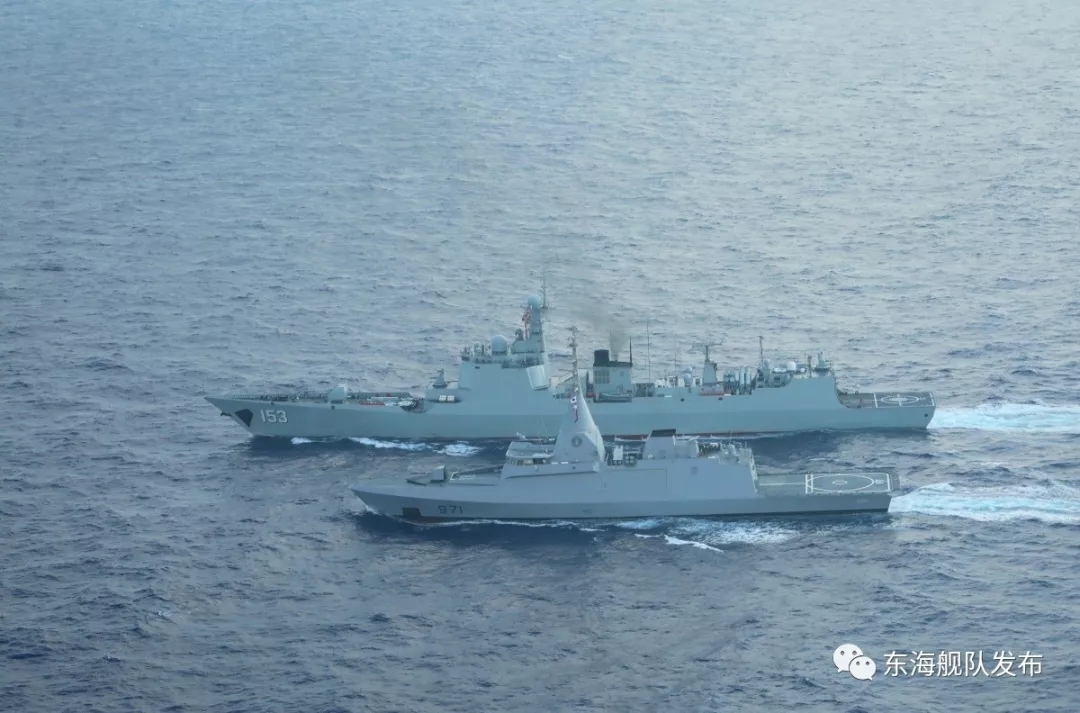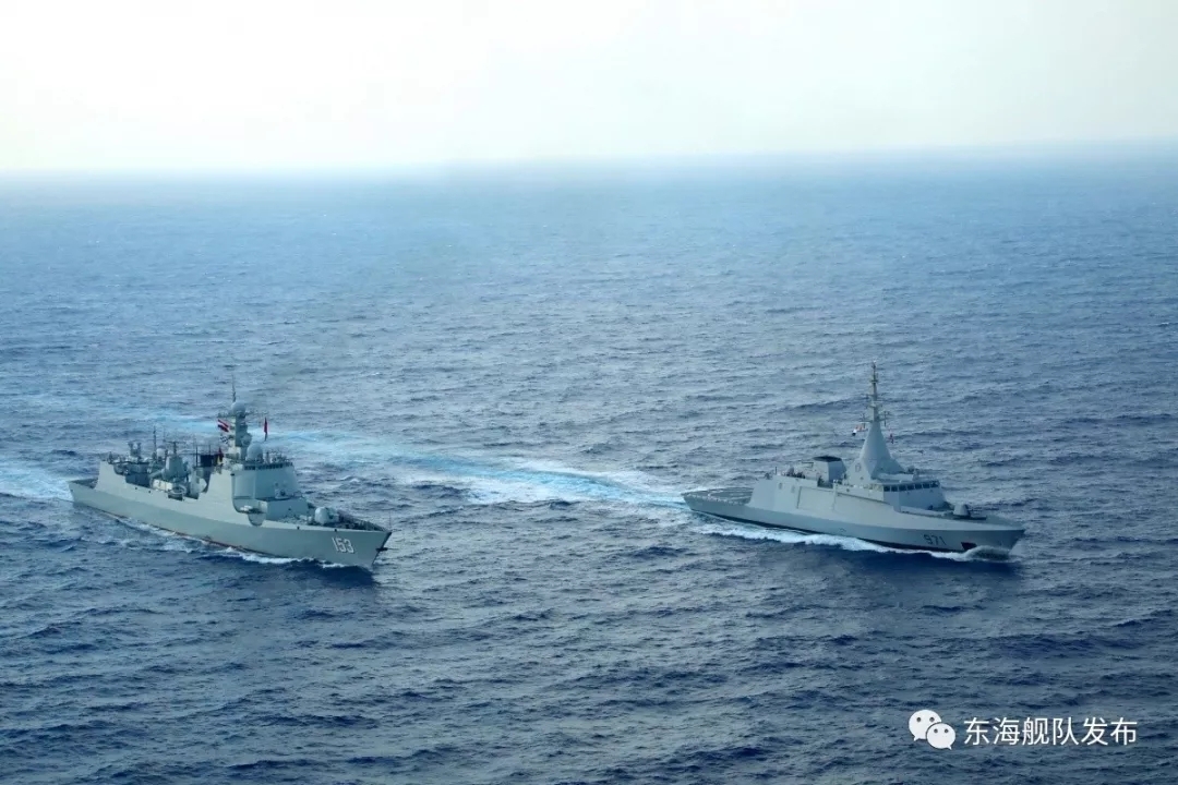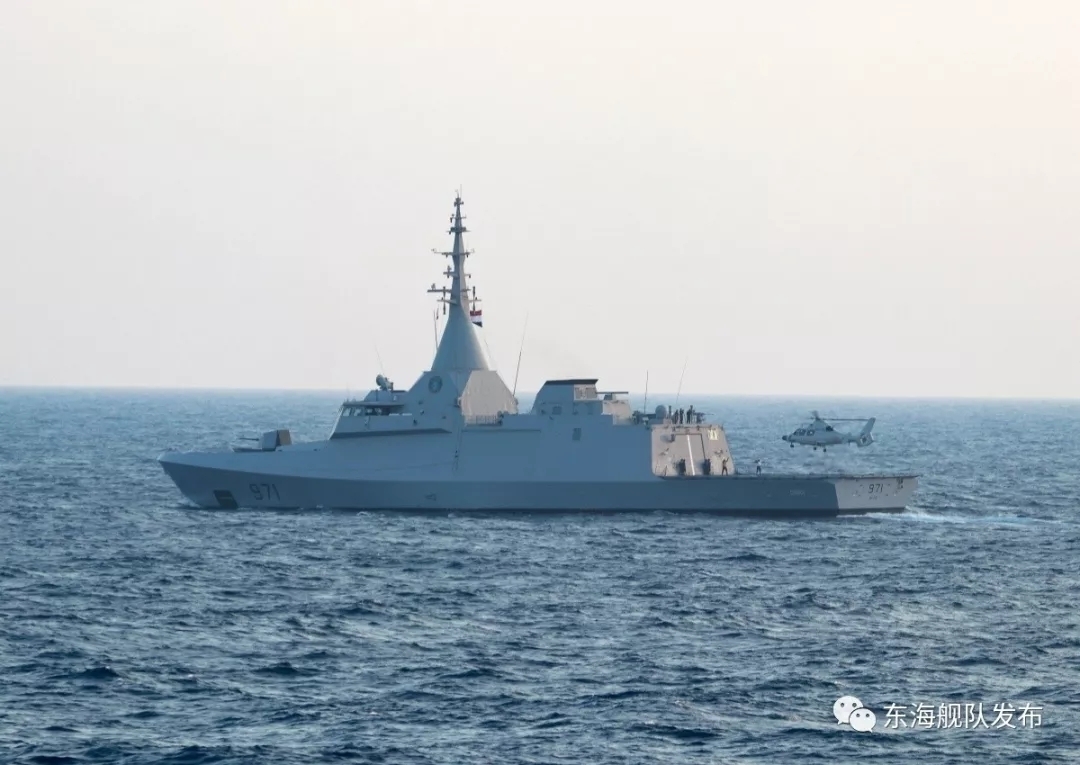 西安舰与埃及海军“阿拉法特”号护卫舰进行联合演练。