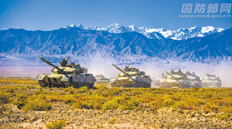 国庆节前夕,第76集团军某旅组织部队在野外开展实战化演练。图为坦克分队进行编队机动。