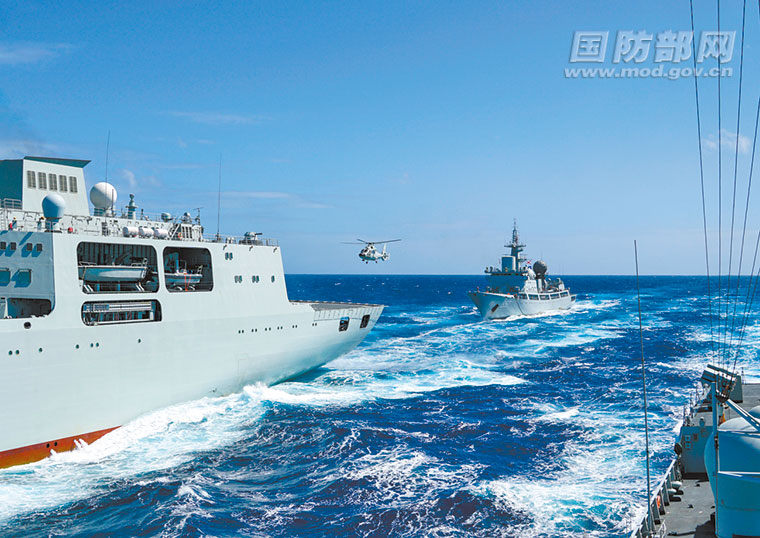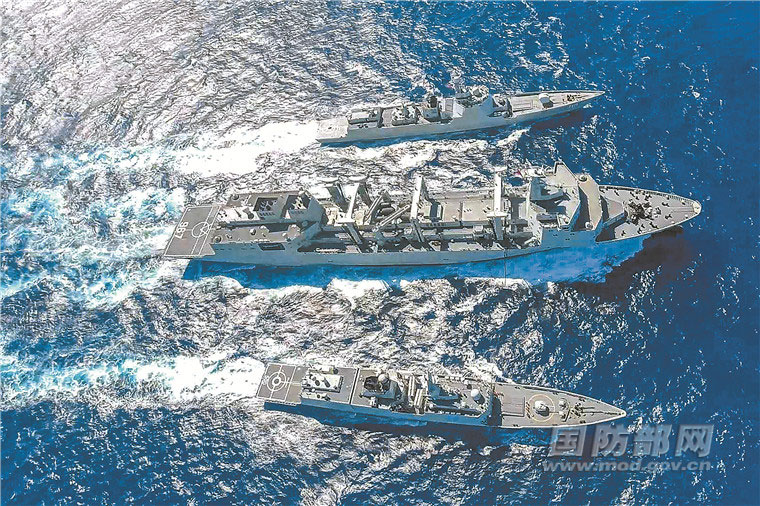 编队在太平洋海域实施综合补给。