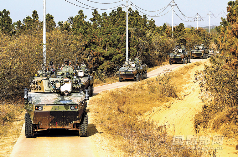 2月22日,陆军某旅组织合成营对抗演练,装甲突击群快速集结,向演练地域实施机动。张毛 摄