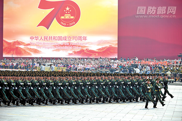 2019年10月1日,武警北京总队官兵组成受阅方队,正步走过天安门广场。 武炎龙 提供