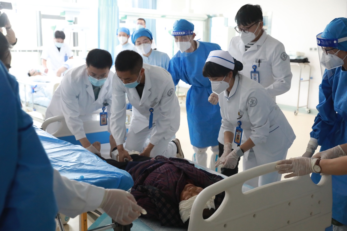 9月6日,西部战区总医院收治从泸定县转运来的伤员。新华社发(韦世铭 摄)