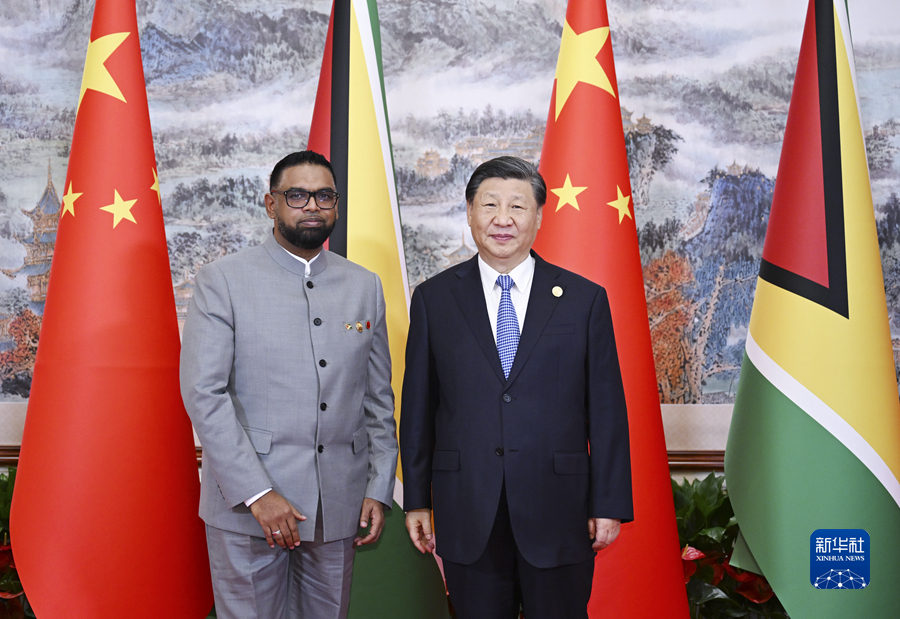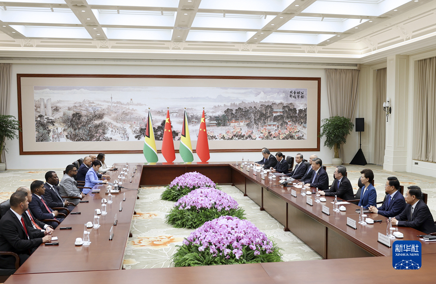 习近平指出,中国和圭亚那虽然相距遥远,但友谊源远流长。圭亚那是加勒比地区最早承认一个中国原则并同新中国建交的国家。去年,中圭隆重庆祝了建交50周年。近年来,圭亚那经济快速发展,国家建设日新月异,中国正在以高质量发展全面推进中国式现代化。中圭两国要做彼此信赖、相互倚重的好朋友,共享机遇、共迎挑战、共谋合作、共促发展,推动构建更加紧密的中圭命运共同体。