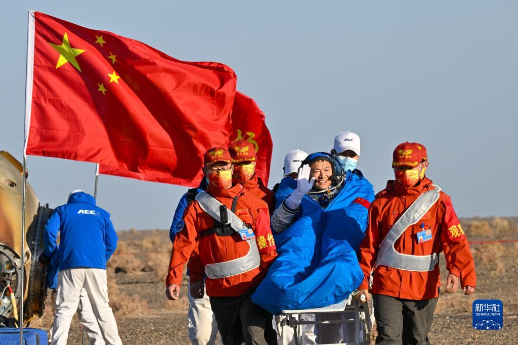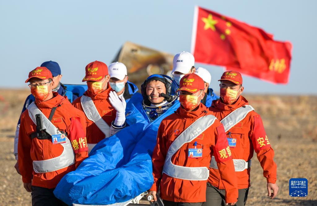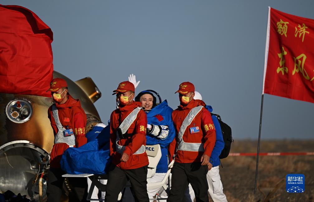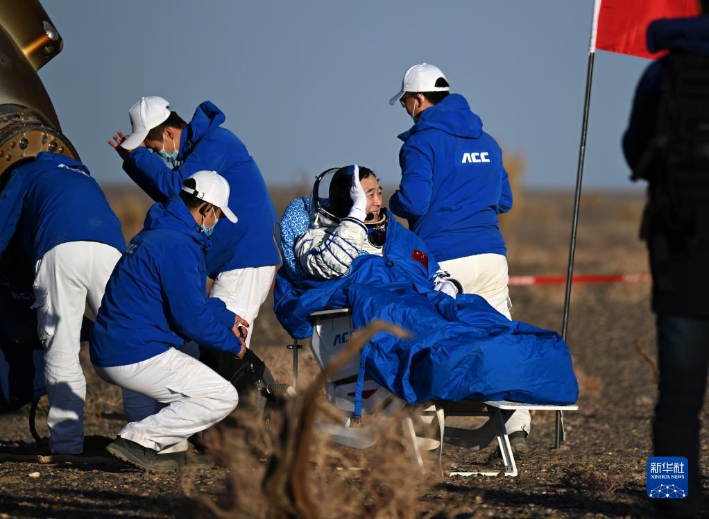 10月31日,神舟十六号载人飞船返回舱在东风着陆场成功着陆。这是航天员朱杨柱安全顺利出舱。