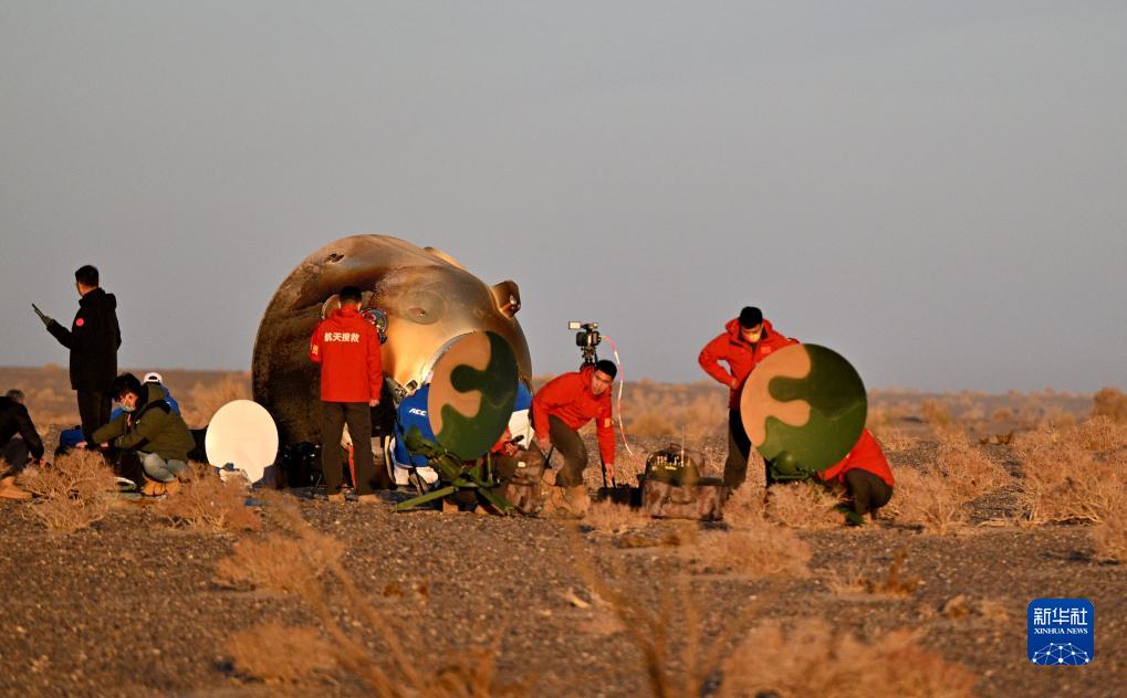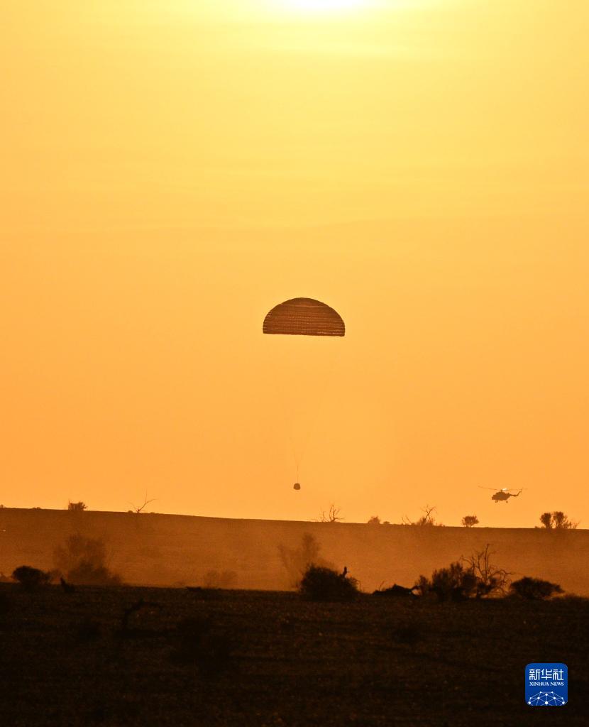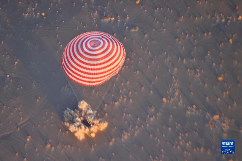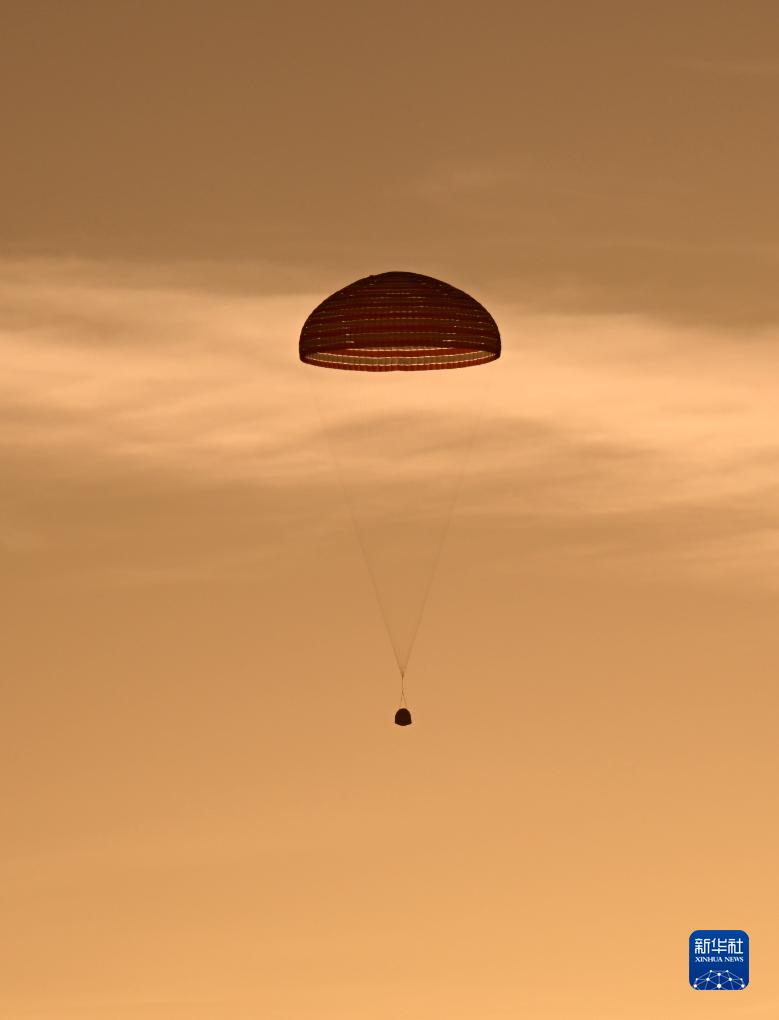 10月31日,神舟十六号载人飞船返回舱在东风着陆场成功着陆。