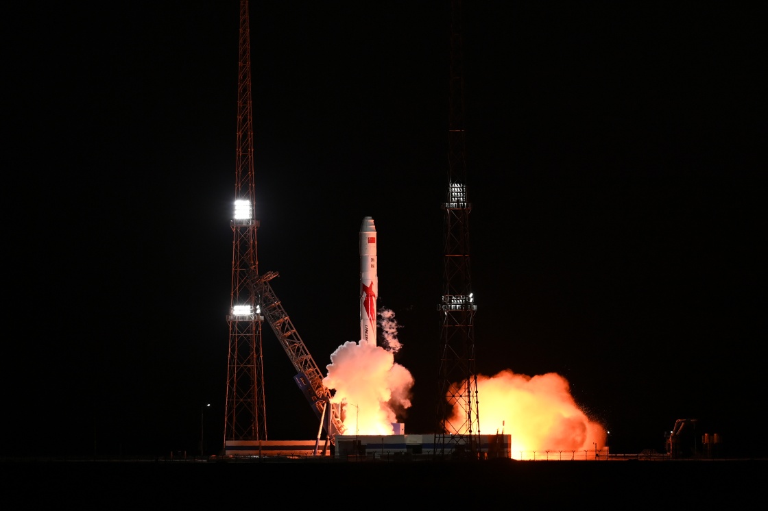 12月9日7时39分,朱雀二号遥三运载火箭在我国酒泉卫星发射中心发射升空,将搭载的鸿鹄卫星、天仪33卫星及鸿鹄二号卫星顺利送入预定轨道,发射任务获得圆满成功。新华社发(汪江波 摄)