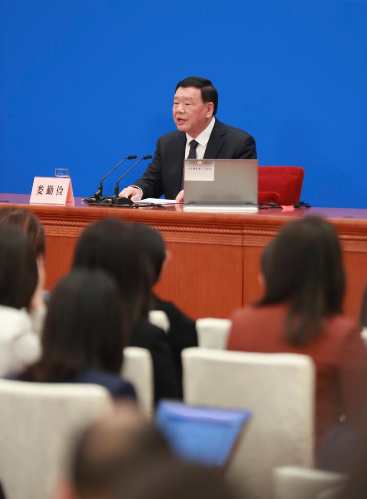 3月4日,十四届全国人大二次会议在北京人民大会堂举行新闻发布会。大会发言人娄勤俭就大会议程和人大工作相关问题回答中外记者的提问。