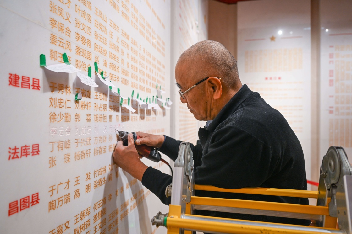 3月29日,在平津战役纪念馆,工作人员为新确认的烈士刻名。