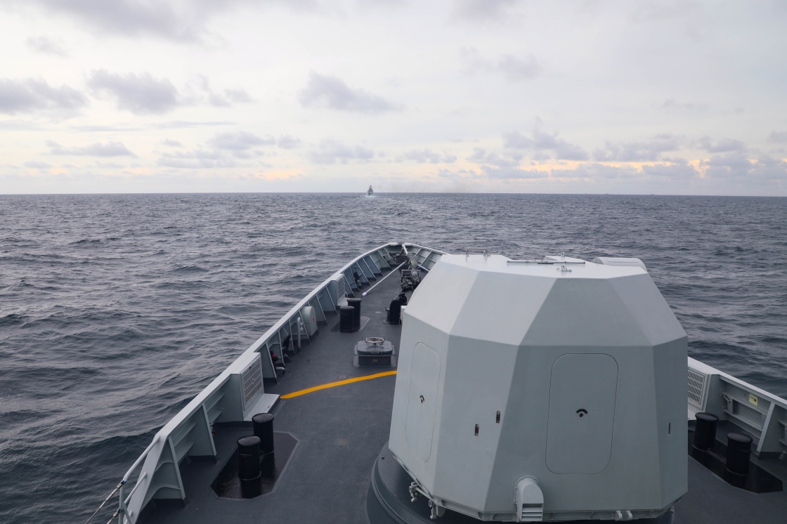6月26日,在中越第36次北部湾联合巡逻中,中方舰艇编队进行巡逻。新华社发(李正嵩 摄)
