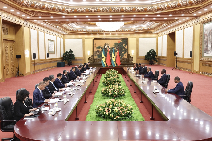 新华社北京9月5日电(记者董雪、丁静)9月5日下午,国家主席习近平在北京人民大会堂会见来华出席中非合作论坛北京峰会并进行正式访问的圣多美和普林西比总理特罗瓦达。两国领导人宣布,将双边关系提升为战略伙伴关系。