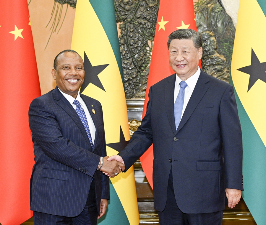 习近平指出,近年来,中国同圣多美和普林西比关系保持良好发展势头,两国各领域务实合作成果丰硕。事实证明,圣多美和普林西比重新回到中非友好合作大家庭,完全符合两国人民共同利益。中方将一如既往支持圣多美和普林西比推进国家建设和经济发展的努力,愿同圣普方积极落实此次中非合作论坛北京峰会成果,推动两国战略伙伴关系更好造福人民。