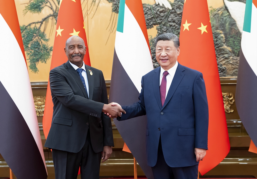 9月6日下午,国家主席习近平在北京人民大会堂会见来华出席中非合作论坛北京峰会的苏丹主权委员会主席布尔汉。新华社记者 丁林 摄