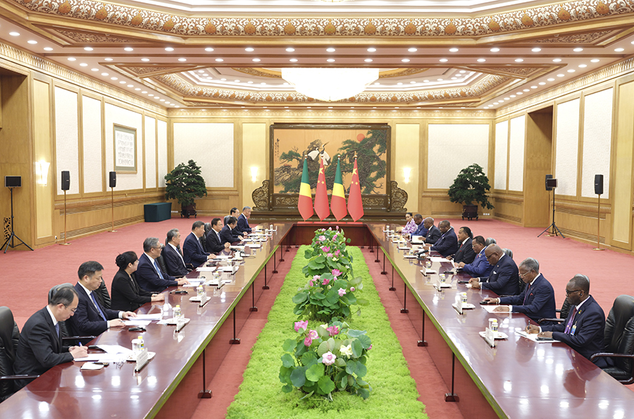 9月4日中午,国家主席习近平在北京人民大会堂会见来华出席纪念中国人民抗日战争暨世界反法西斯战争胜利80周年活动的刚果(布)总统萨苏。