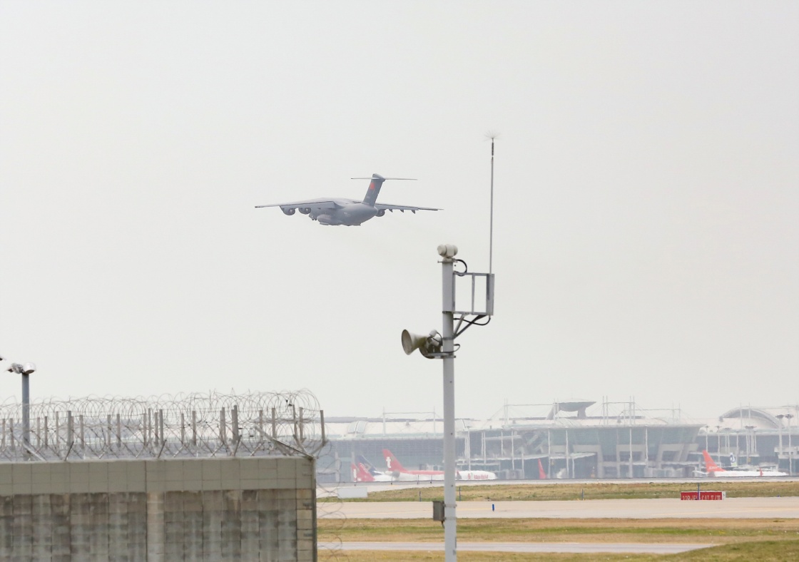 4月22日,接运第十三批在韩中国人民志愿军烈士遗骸的军机启程回国。新华社记者 姚琪琳 摄