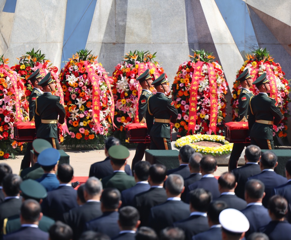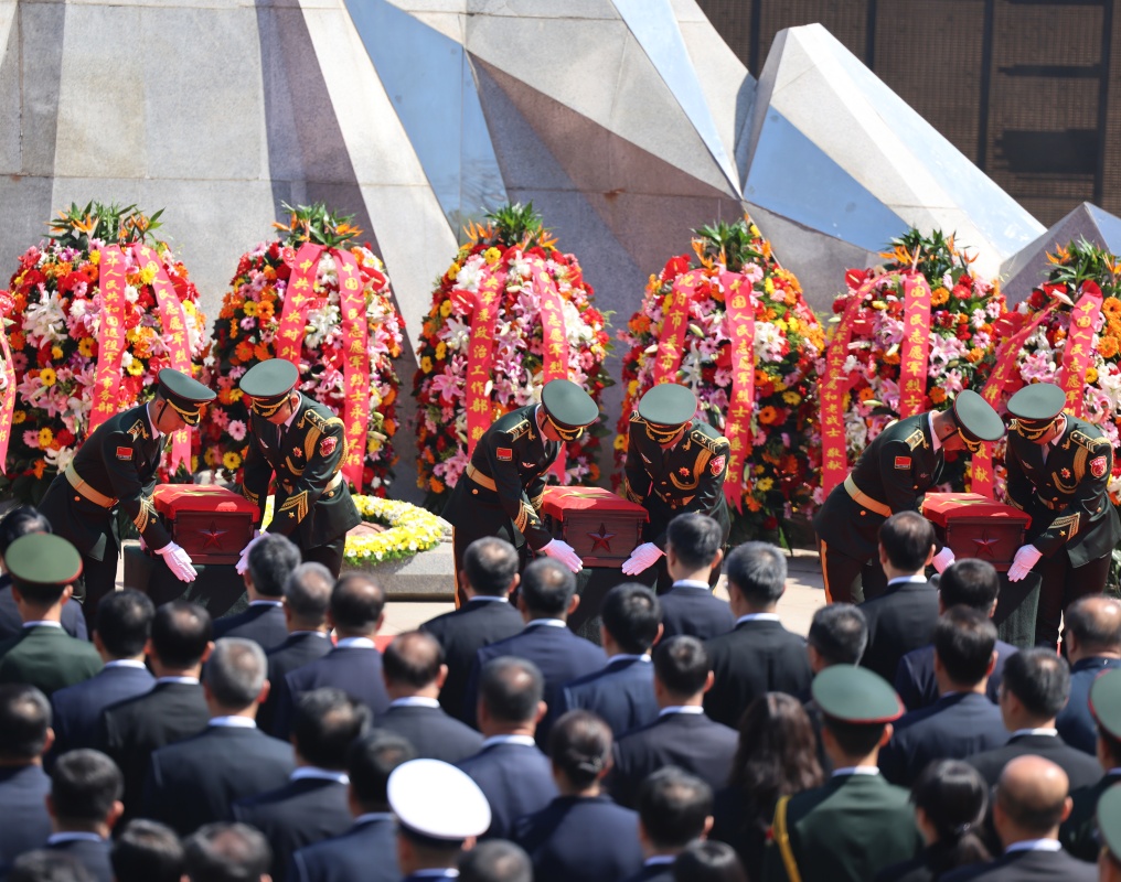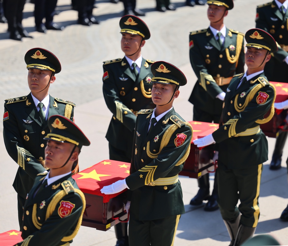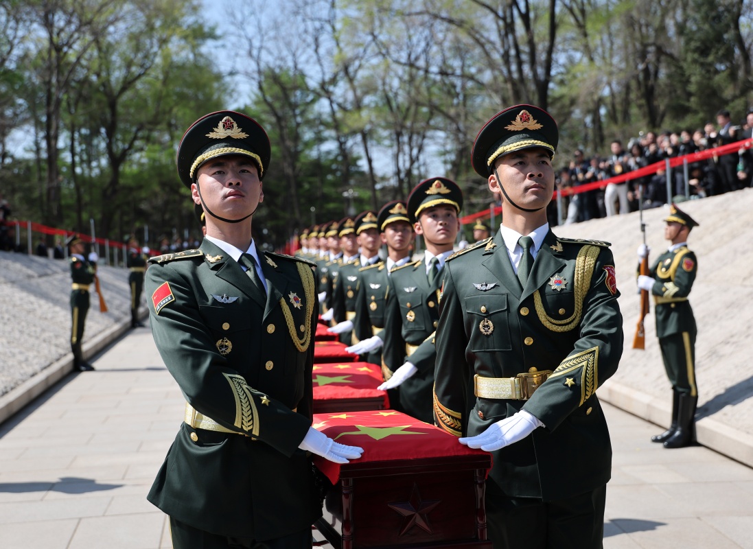 4月23日,第十三批在韩中国人民志愿军烈士遗骸安葬仪式在沈阳抗美援朝烈士陵园举行。12位志愿军烈士英灵在阔别祖国70多年后回到中华大地安息。