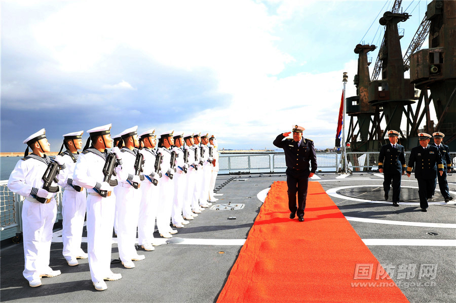 阿尔及利亚中部海区司令萨马赫准将检阅我军仪仗队。刘鑫 摄