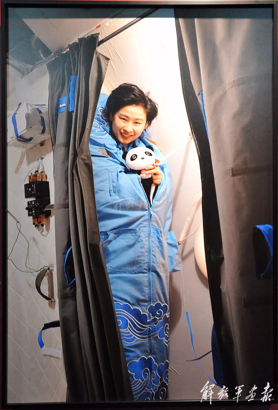 “晚安地球” 天宫一号舱内,刘洋钻进睡袋准备休息。航天员在太空中睡觉不是“躺”着的,而是“站”入固定在舱壁上的睡袋里,免得睡着了漂到别处。(提供/景海鹏 刘旺 刘洋)
