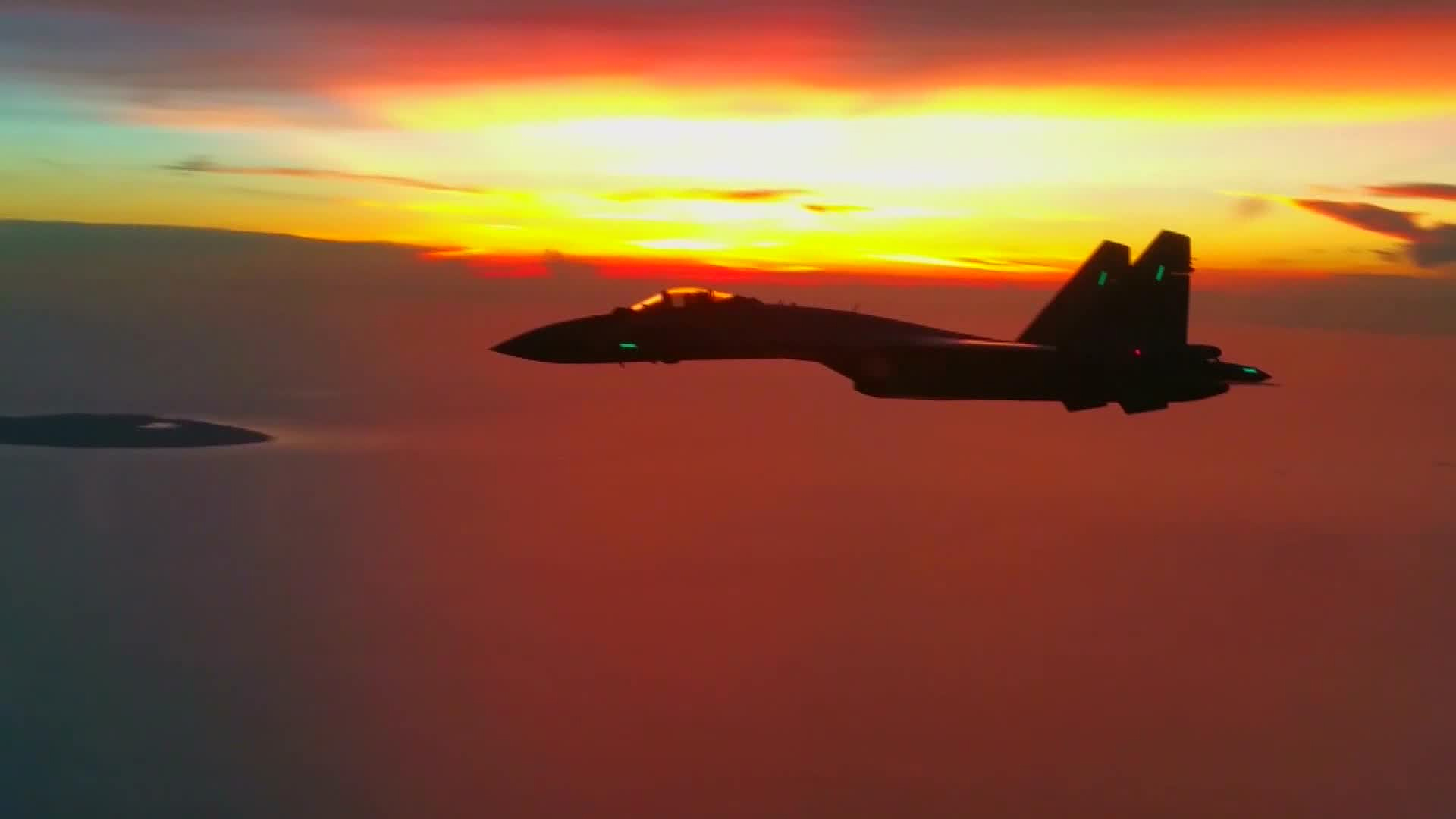中国空军苏-35战机海上巡航(视频截图)。
