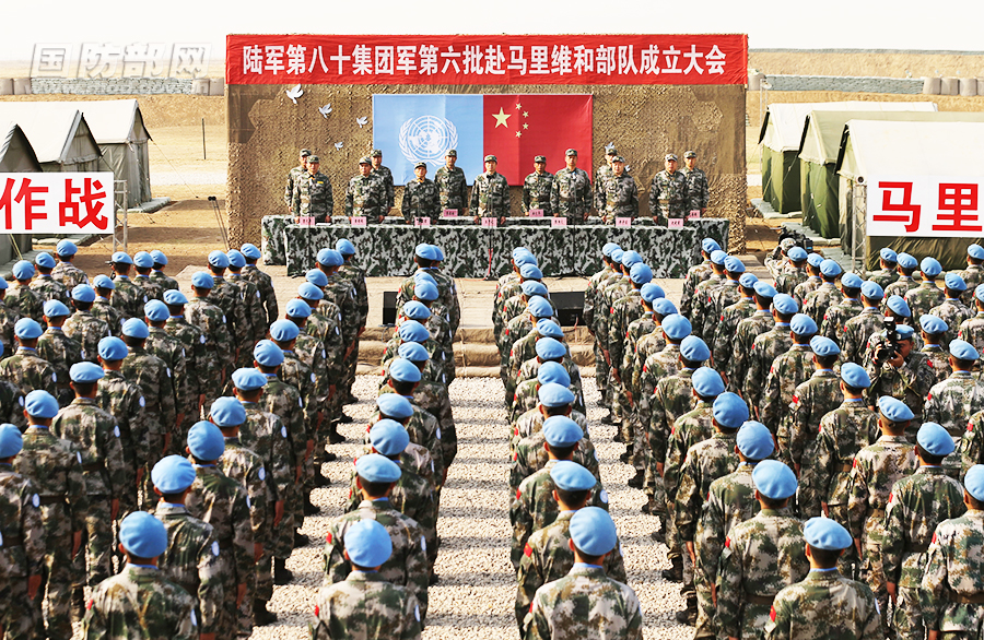 中国第六批赴马里维和部队组建大会。