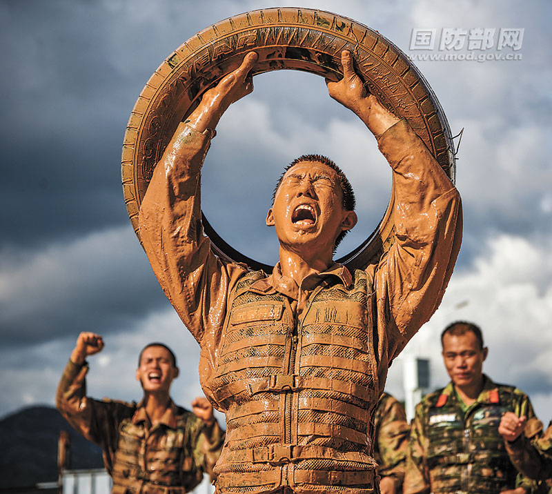 武警广东总队官兵进行极限体能训练。吴俞 摄
