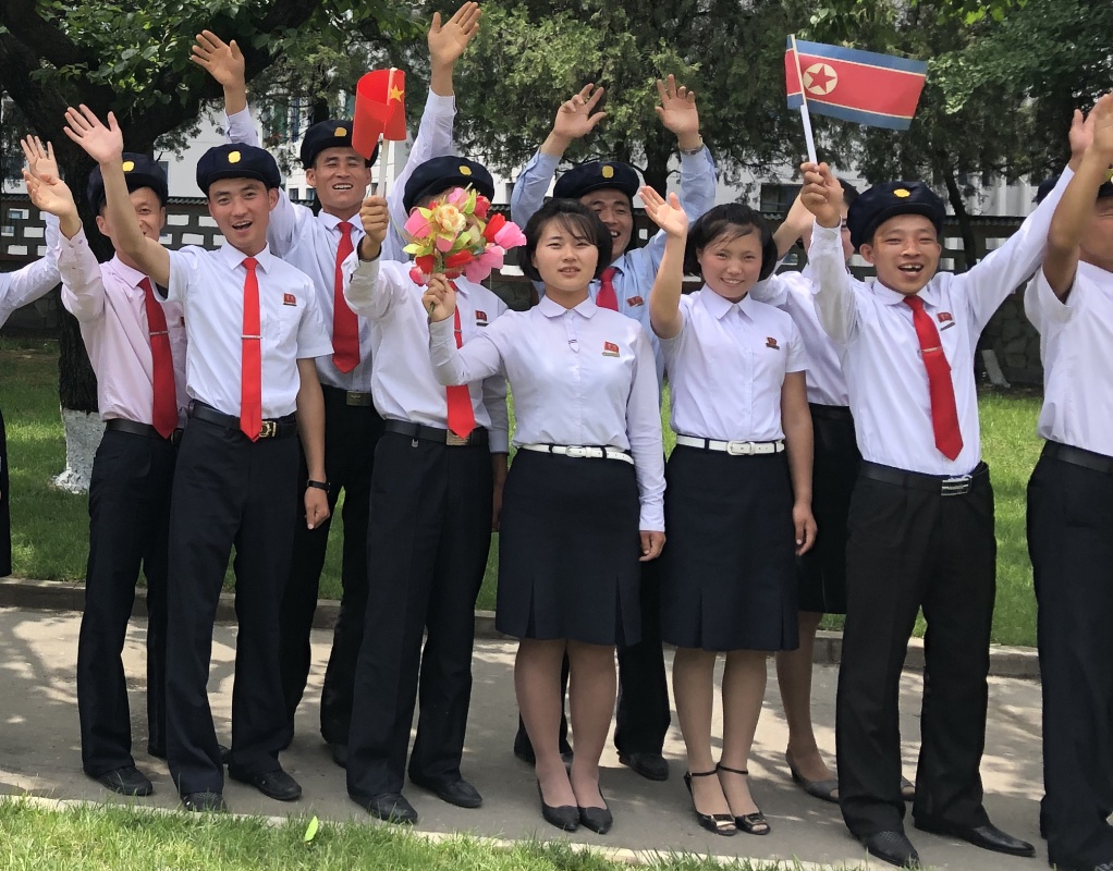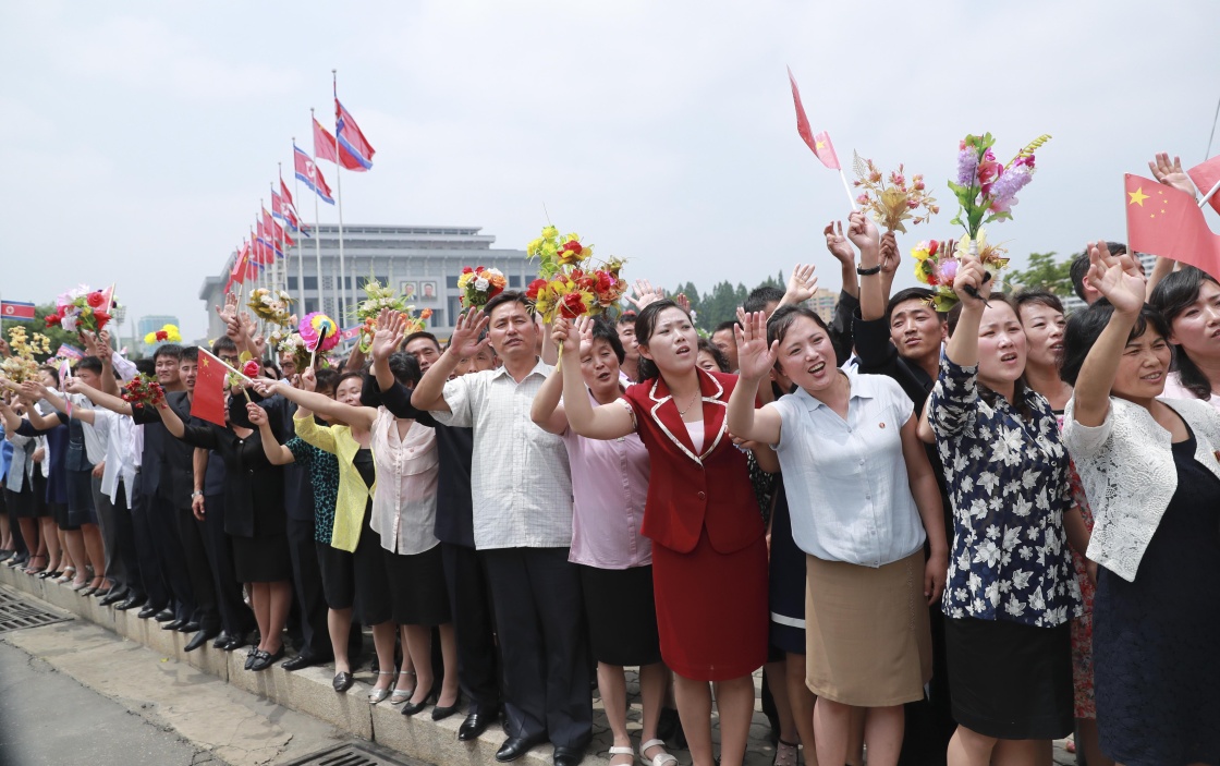 6月20日,中共中央总书记、国家主席习近平乘专机抵达平壤,开始对朝鲜民主主义人民共和国进行国事访问。这是朝鲜民众在平壤街头热烈欢迎习近平。新华社记者 江亚平 摄