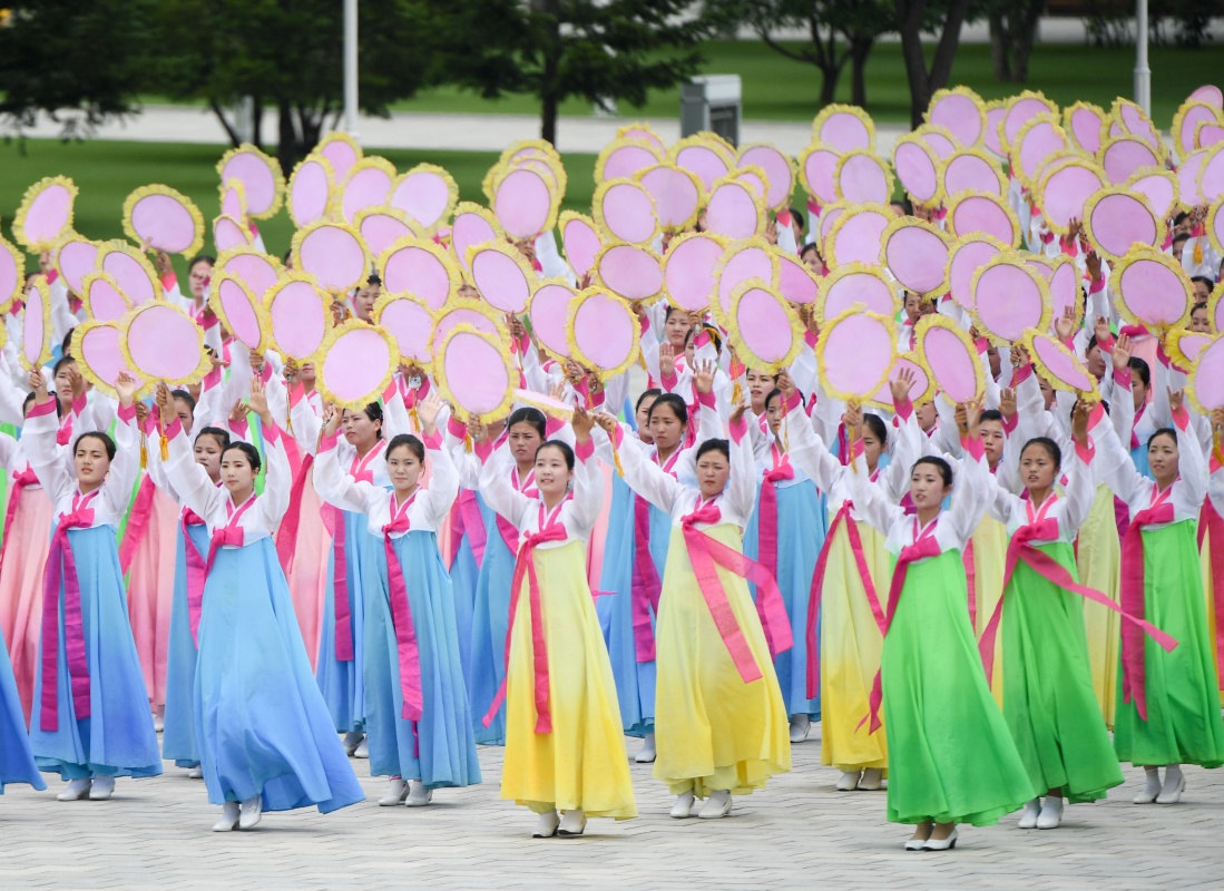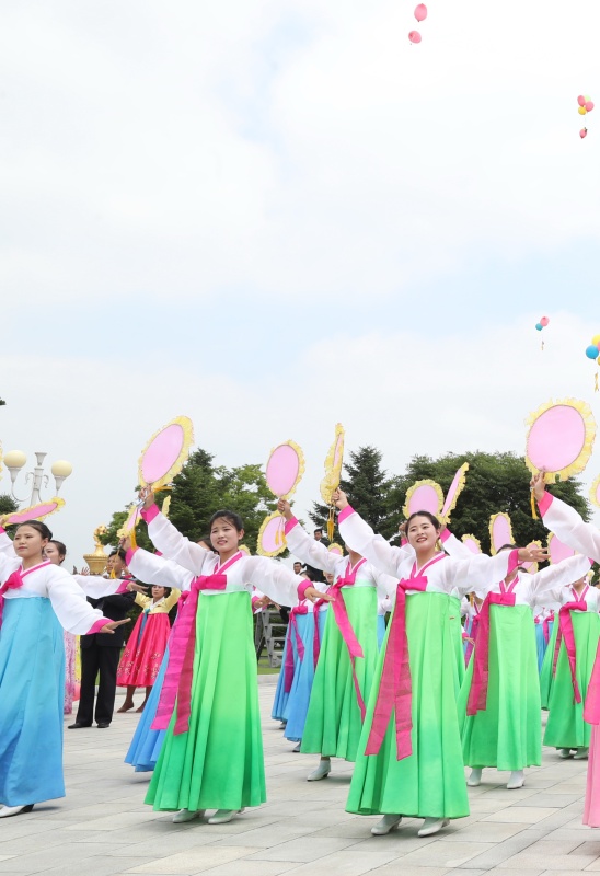 6月20日,中共中央总书记、国家主席习近平乘专机抵达平壤,开始对朝鲜民主主义人民共和国进行国事访问。这是朝鲜民众在锦绣山太阳宫广场热烈欢迎习近平。新华社记者 黄敬文 摄