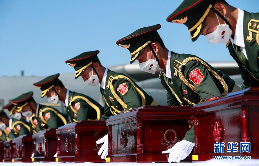 中韩双方27日在韩国仁川国际机场举行第七批在韩中国人民志愿军烈士遗骸交接仪式。双方将交接117位在韩中国人民志愿军烈士遗骸及相关遗物。