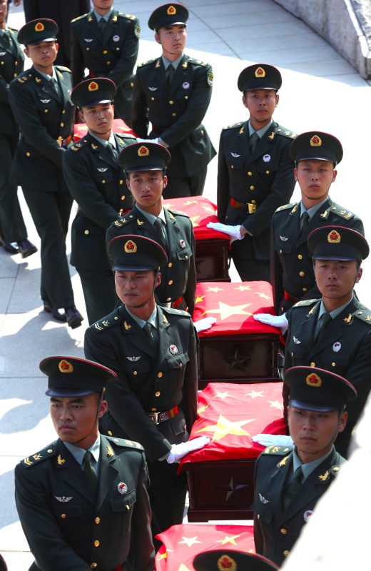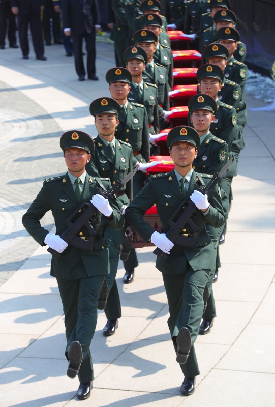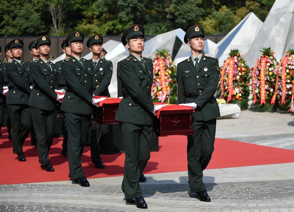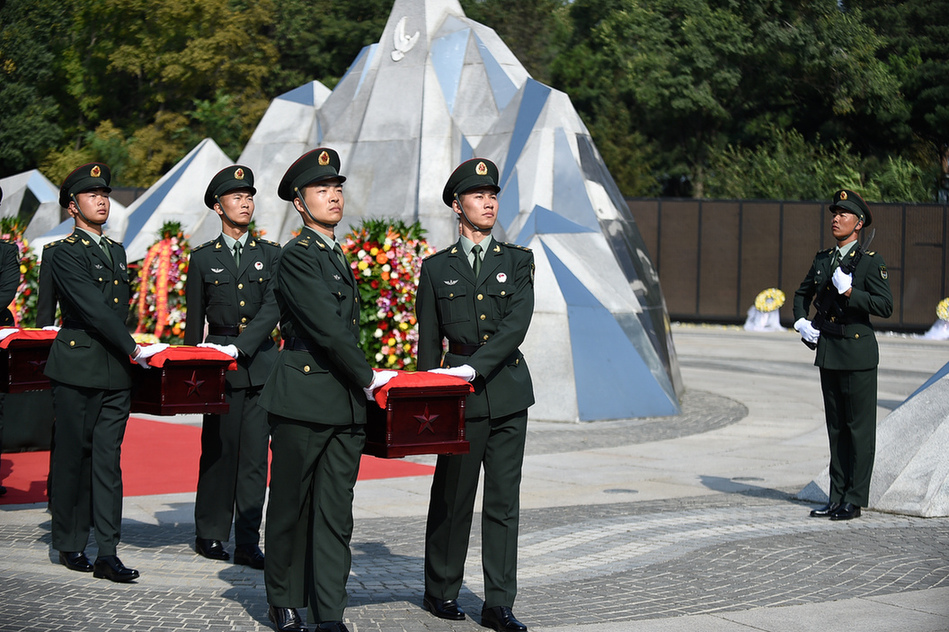9月28日,第七批在韩中国人民志愿军烈士遗骸安葬在沈阳抗美援朝烈士陵园。117位志愿军烈士英灵回到祖国和人民的怀抱,在中华大地上安息。