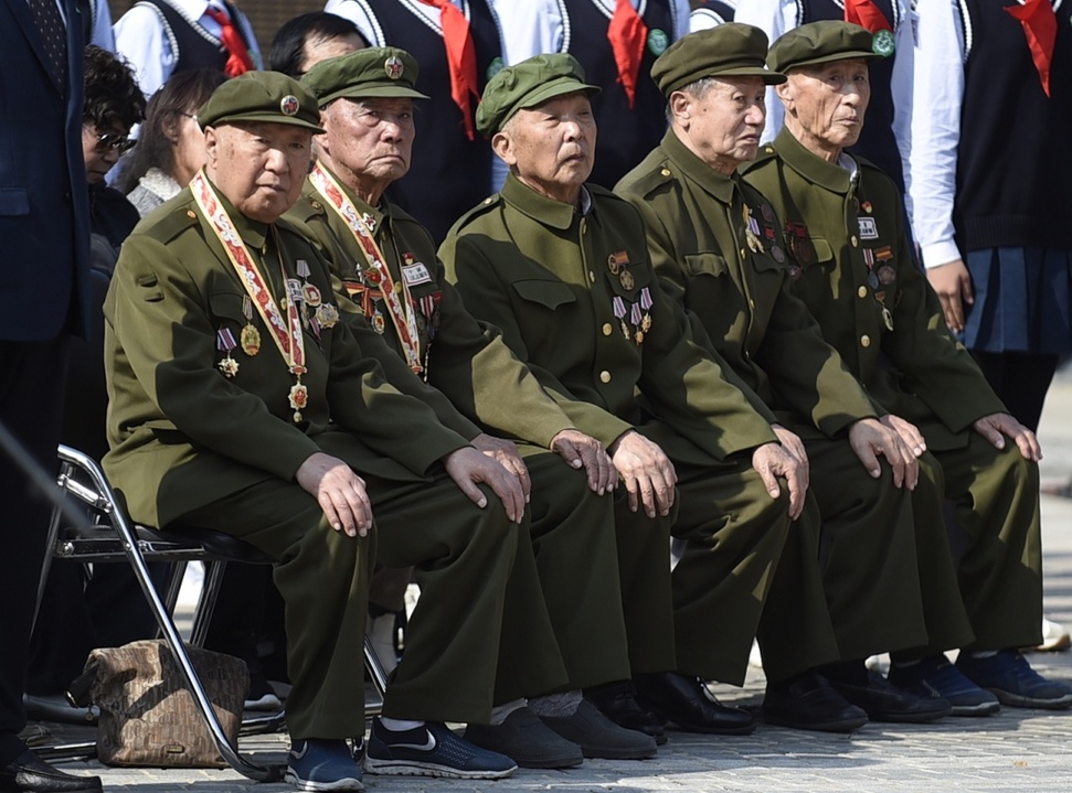 9月28日,志愿军老战士代表参加安葬仪式。新华社记者 龙雷 摄