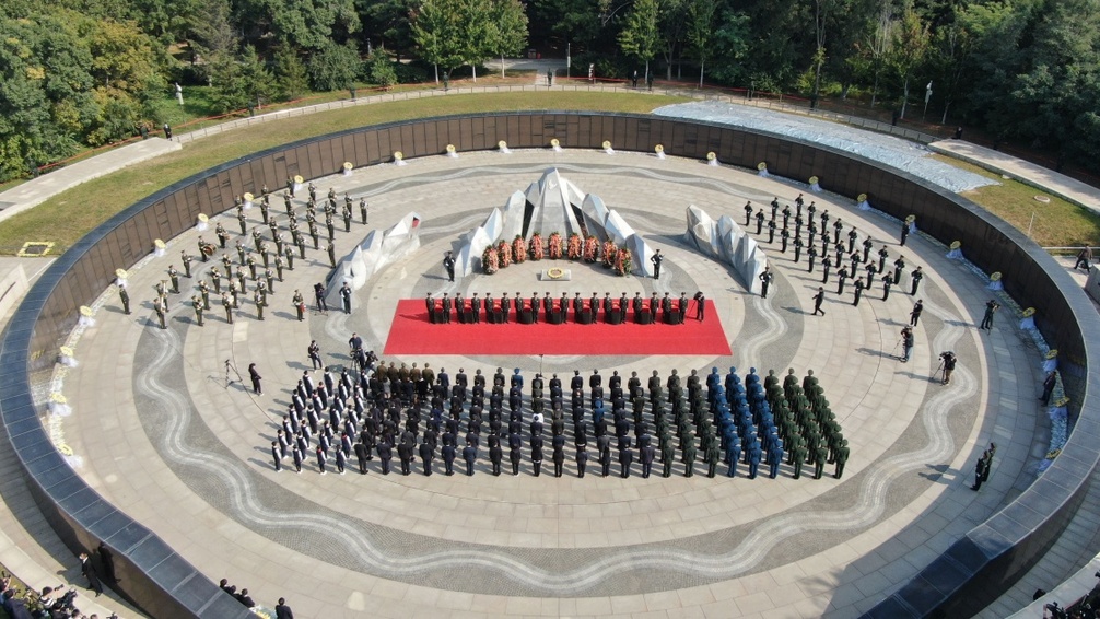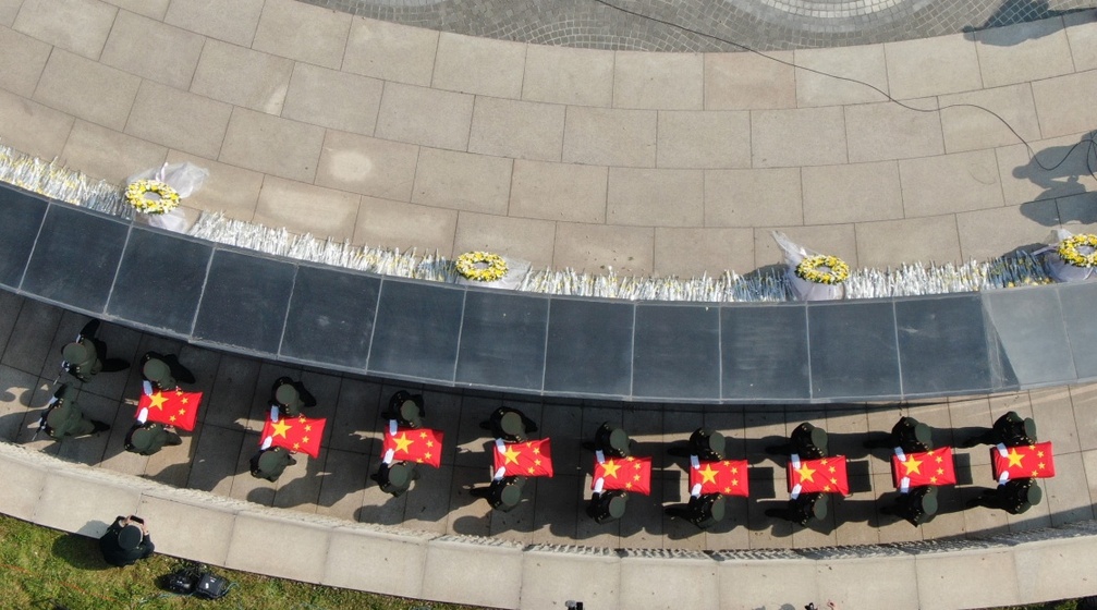 9月28日,第七批在韩中国人民志愿军烈士遗骸安葬仪式在沈阳抗美援朝烈士陵园举行(无人机照片)。新华社记者 杨青 摄