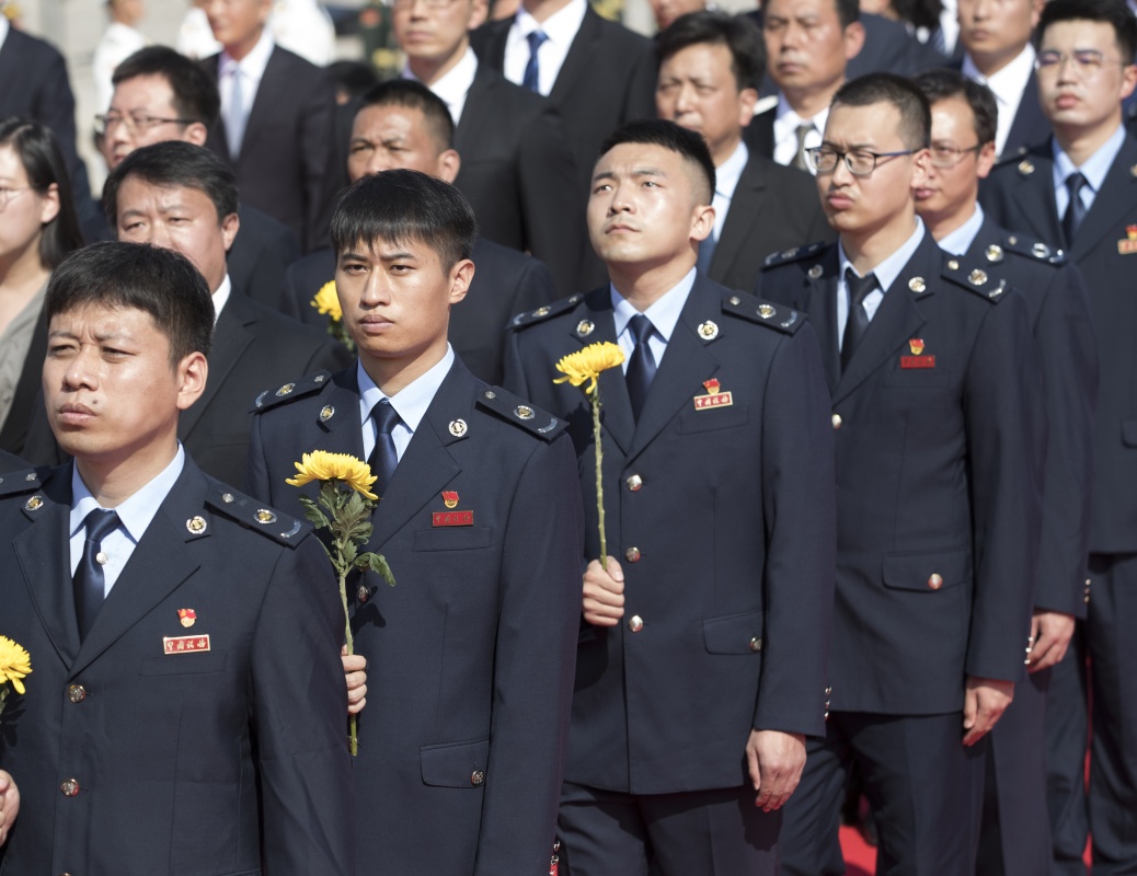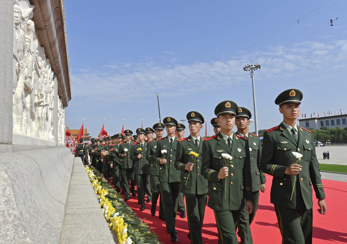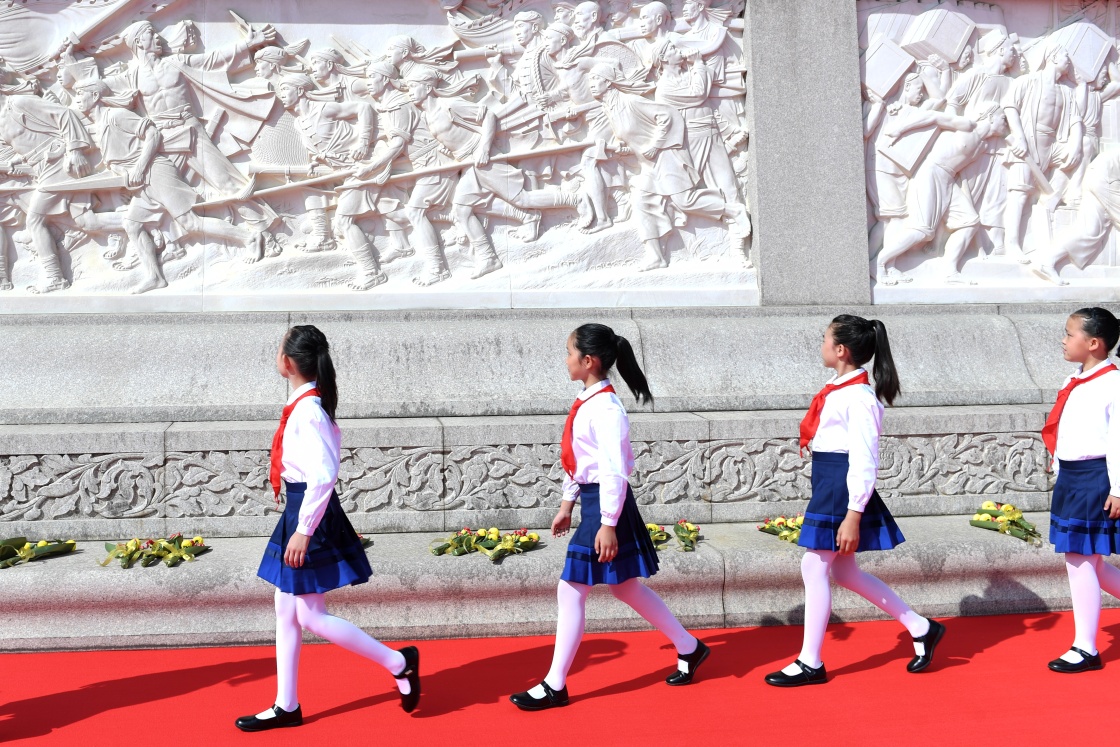 9月30日,烈士纪念日向人民英雄敬献花篮仪式在北京天安门广场隆重举行。新华社记者 李响 摄