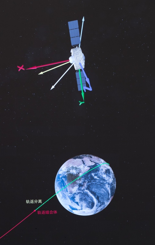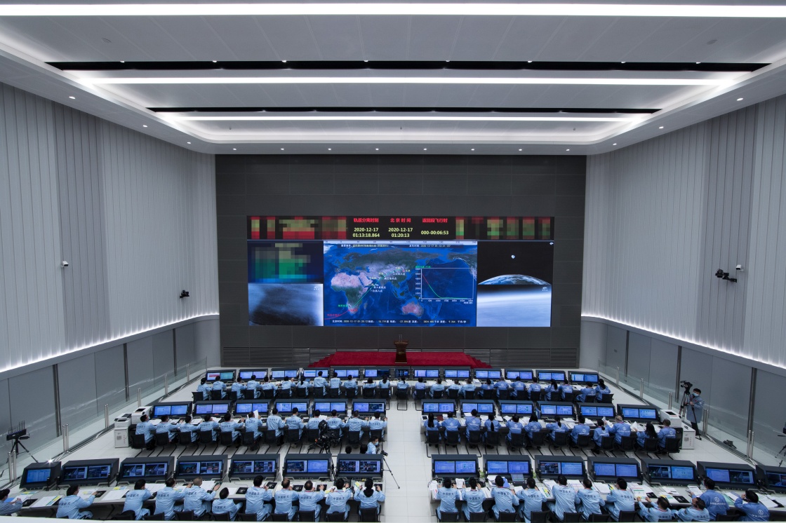 在北京航天飞行控制中心拍摄的嫦娥五号返回器着陆示意图(12月17日摄)。新华社记者 金立旺 摄