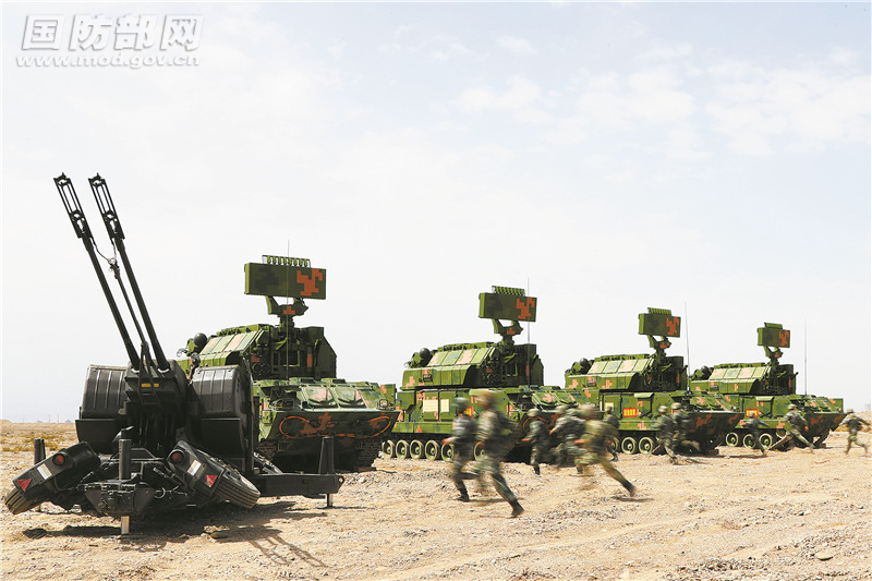 伴着刺耳的防空警报,各型防空装备迅即展开,部队进入临战状态。