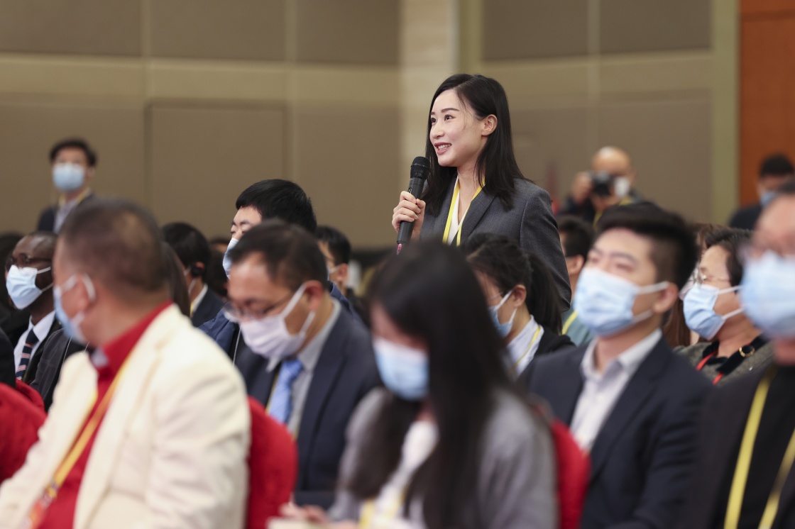 这是记者在分会场提问。新华社记者 李明 摄