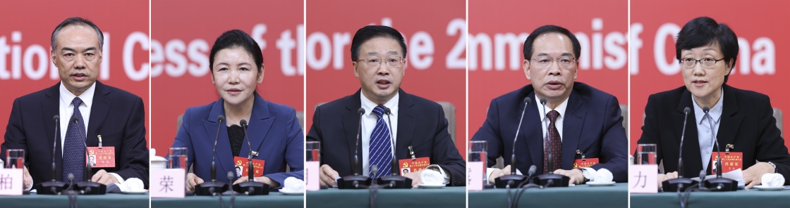 10月19日,中国共产党第二十次全国代表大会新闻中心举行记者招待会。中央政法委副秘书长訚柏,最高人民法院党组副书记、分管日常工作的副院长、一级大法官贺荣,最高人民检察院党组副书记、分管日常工作的副检察长、一级大检察官童建明,公安部党委委员、副部长、国家移民管理局党组书记、局长许甘露,司法部党组成员、副部长左力围绕“坚持以习近平法治思想为指引 努力建设更高水平的法治中国”主题与记者交流。新华社记者 张玉薇 摄
