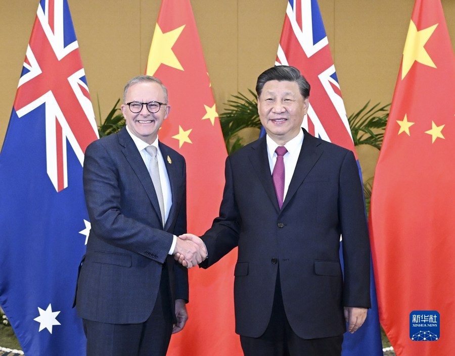 当地时间11月15日下午,国家主席习近平在印度尼西亚巴厘岛会见澳大利亚总理阿尔巴尼斯。新华社记者 燕雁 摄