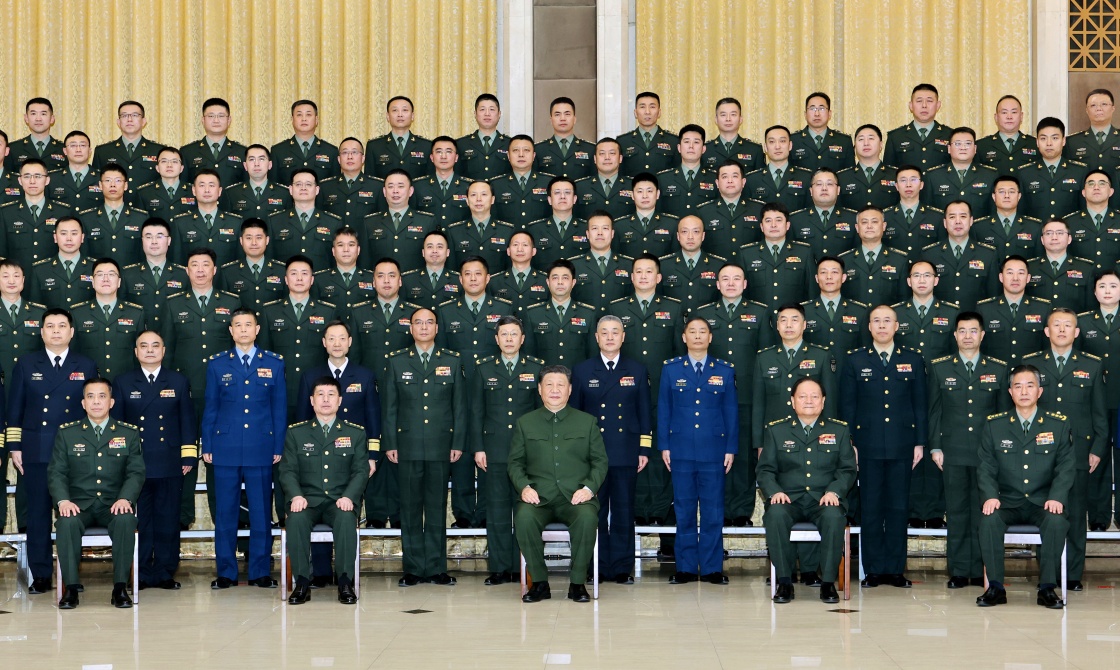 1月24日,中共中央总书记、国家主席、中央军委主席习近平到北部战区机关视察慰问,通过视频看望基层官兵,检查部队战备值班和执行任务情况,代表党中央和中央军委,向全体人民解放军指战员、武警部队官兵、军队文职人员、预备役人员和民兵致以诚挚问候和新春祝福。这是习近平同北部战区官兵代表合影留念。