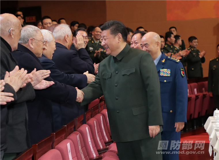 下午4时许,习近平来到老同志中间,全场响起热烈掌声。习近平同大家亲切握手,关切询问他们的身体和生活情况,共同回顾党的十八大以来党、国家、军队事业取得的历史性成就、发生的历史性变革。老同志们很振奋,一致表示要更加紧密地团结在以习近平同志为核心的党中央周围,全面深入贯彻党的十九大精神,以习近平新时代中国特色社会主义思想为指导,贯彻习近平强军思想,牢固树立“四个意识”,自觉坚定“三个维护”,满怀信心迎接强国强军新时代。